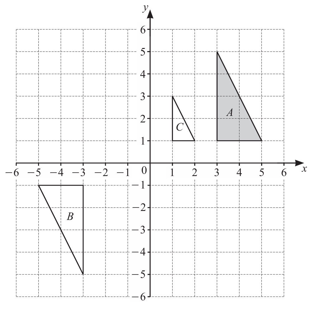 Triangles A, B and C are shown on the grid.