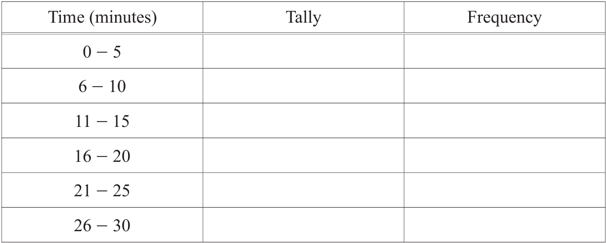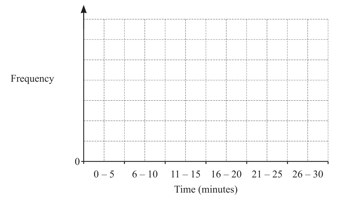 Vertical axis shows frequency, horizontal shows time ranges, bars drawn to correct heights.