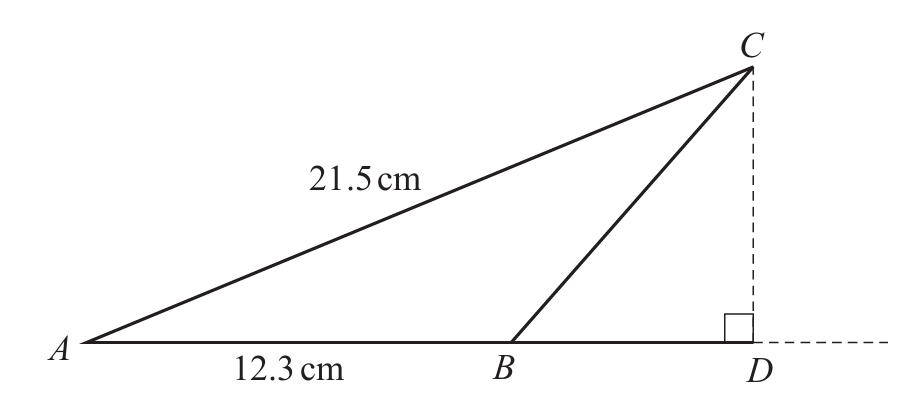 Using Pythagoras’ theorem: \( 2 \times \sqrt{17^2 – 8^2} \) or \( \sqrt{34^2 – 16^2} \).