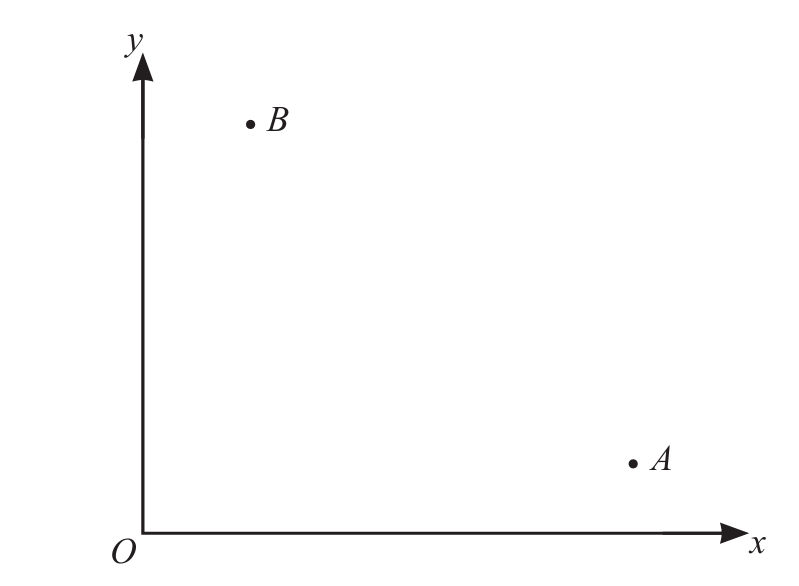 O is the origin (0, 0), A is the point (8, 1) and B is the point (2, 5).