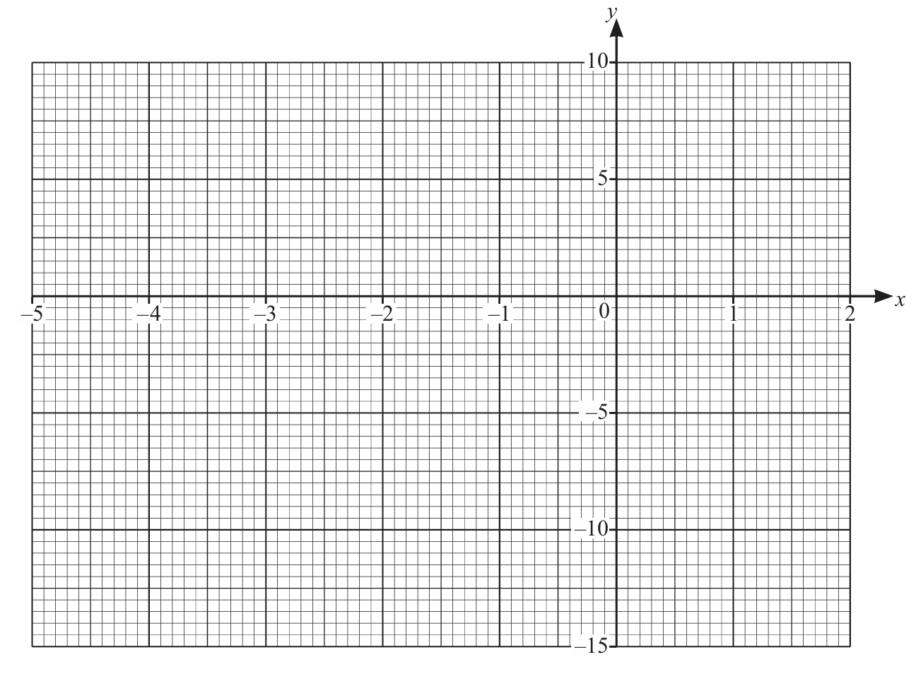 (b) On the grid, draw the graph of \( y = x^3 + 4x^2 – 4 \) for \(-4.5 \leq x \leq 1.5\).