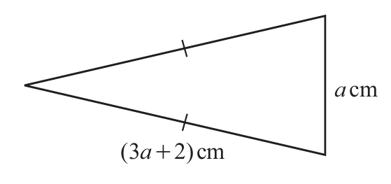 \( a \) cm (base) and \( (3a + 2) \) cm (equal sides)