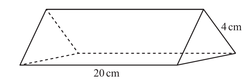 First find area of equilateral triangle: (√3/4)×4² = 6.928cm². Then volume: 6.928×20 = 138.56cm³. Mass is volume × density: 138.56×0.85 ≈ 118g.