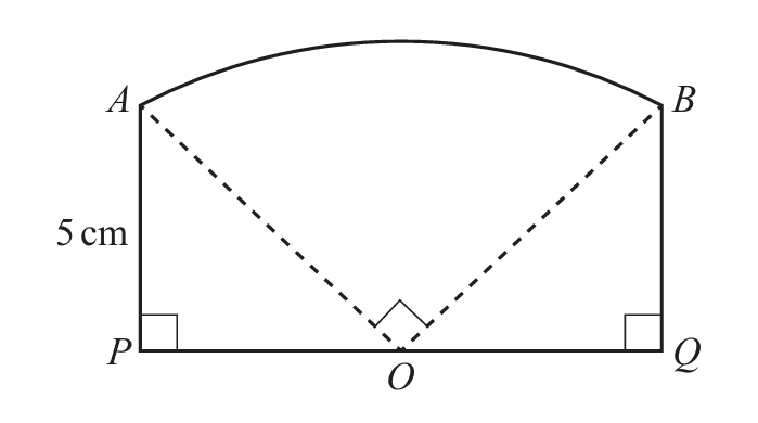Sector area = ¼ × π × 102 = 25π/2 cm2.