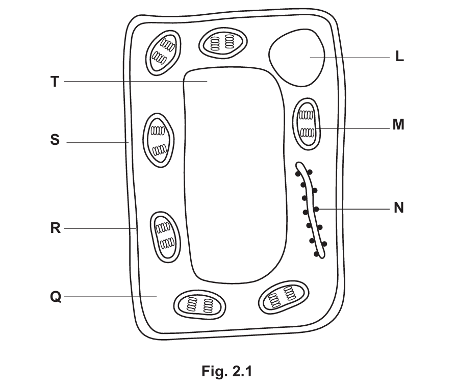 (a) Fig. 2.1 is a diagram showing some of the structures found in a plant cell.