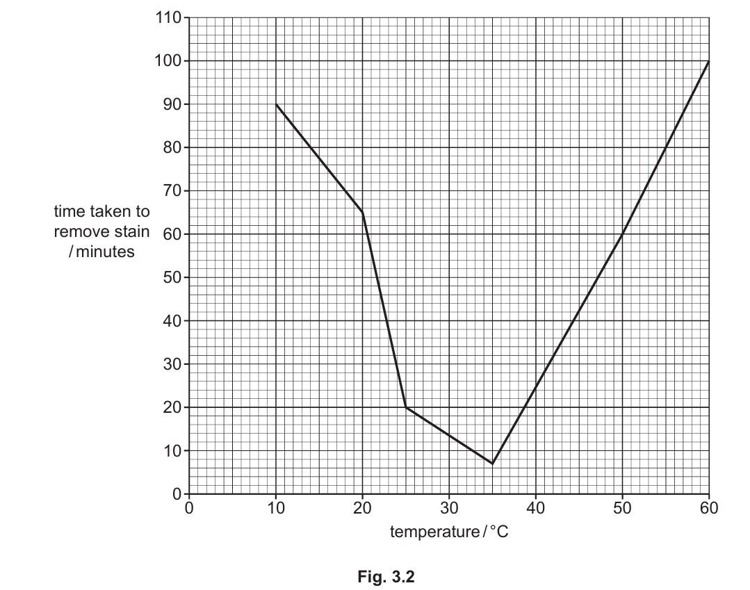 (ii) State the time taken for the washing powder to remove the stain at 20°C.