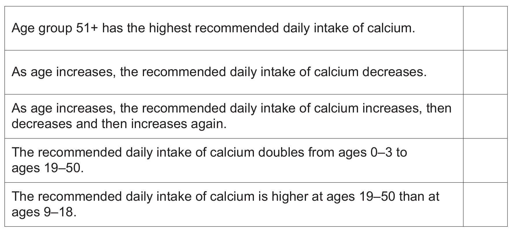 (iii) Suggest reasons why some age groups need more calcium in their diet than others.