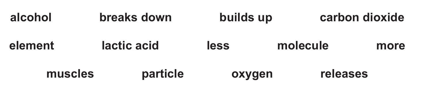 (a) Complete the sentences about anaerobic respiration in humans, using words or phrases from the list.