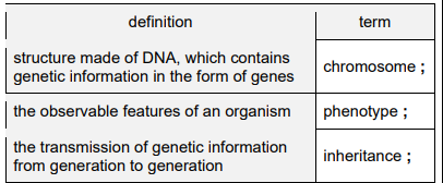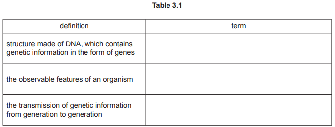 (c) Table 3.1 contains some definitions of genetic terms. Write the correct term next to each definition in Table 3.1.