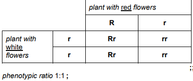 Phenotypic ratio ……… red flowers : ……… white flowers