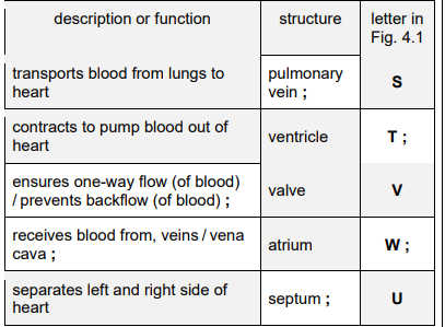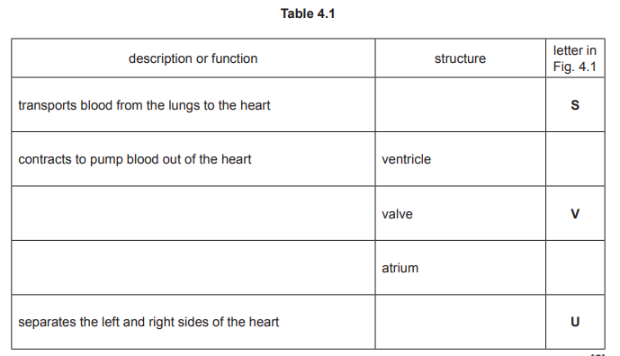 (a) Complete Table 4.1, using Fig. 4.1. Letters may be used once, more than once or not at all. ![]()