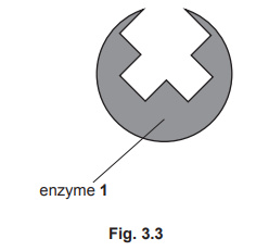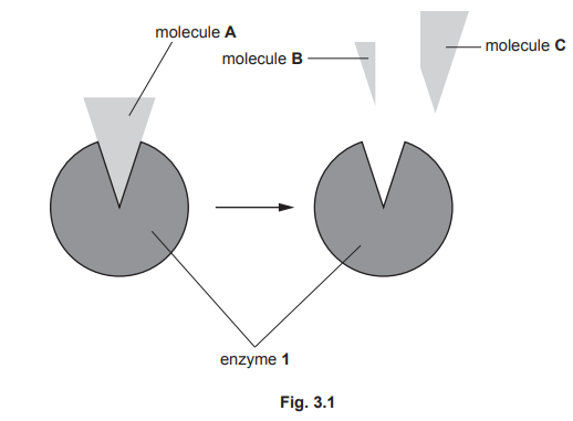 (b) Fig. 3.1 is a diagram of enzyme 1 catalysing the breakdown of molecule A into two smaller molecules, B and C.