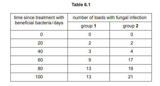 (ii) Using the information in Table 6.1, describe the effect of treating the toads with beneficial bacteria.
