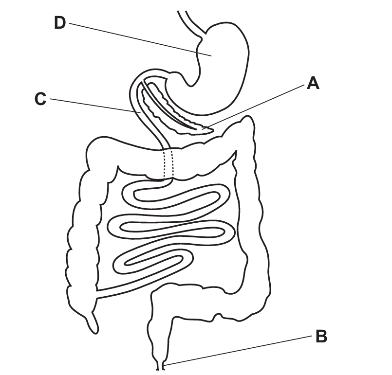 The diagram shows part of the human digestive system.