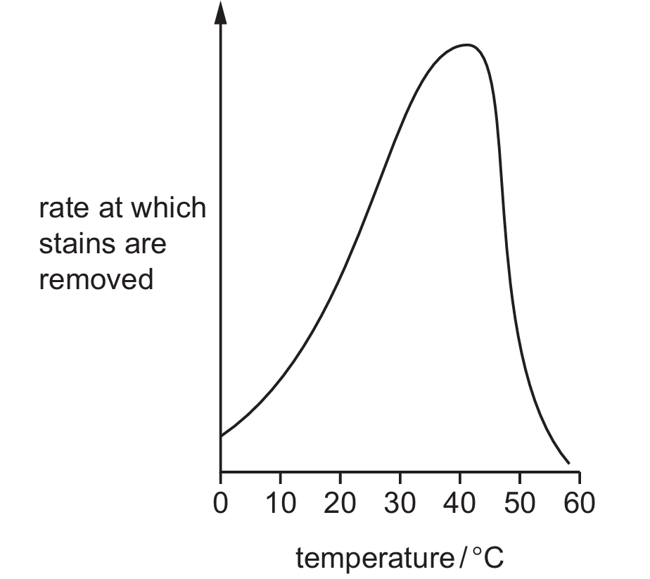 The graph shows how changing the temperature affects the rate of stain removal from clothes, using a biological washing powder.