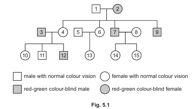Fig. 5.1 shows a pedigree chart for a family with red-green colour blindness.