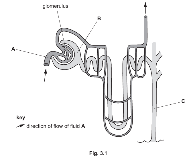 (a) Fig. 3.1 shows a kidney nephron and its associated blood vessels.