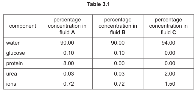 (ii) Using the information in Fig. 3.1 and Table 3.1, describe and explain the differences in the compositions of fluids A, B and C.
