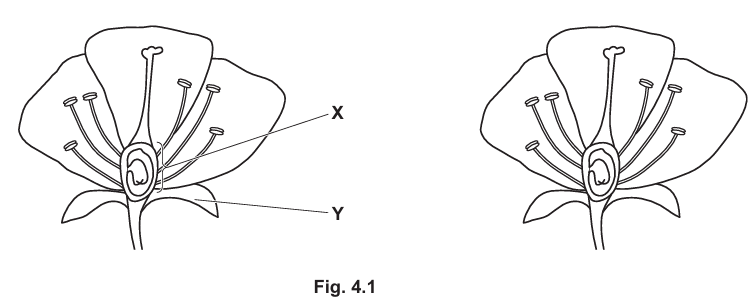 (a) Fig. 4.1 shows a diagram of two flowers from different plants of the same species.