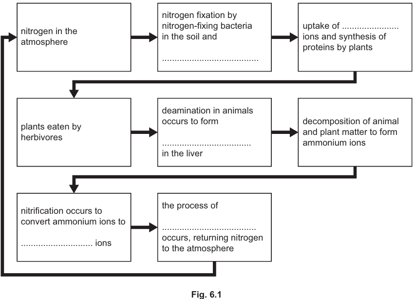 (a) The flow chart in Fig. 6.1 shows one pathway of nitrogen as it travels through the nitrogen cycle.