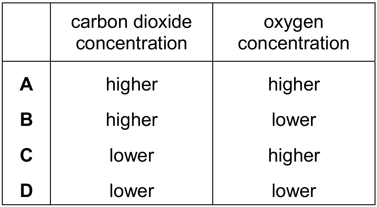 Which row shows how the composition of expired air differs from inspired air?