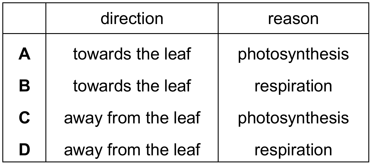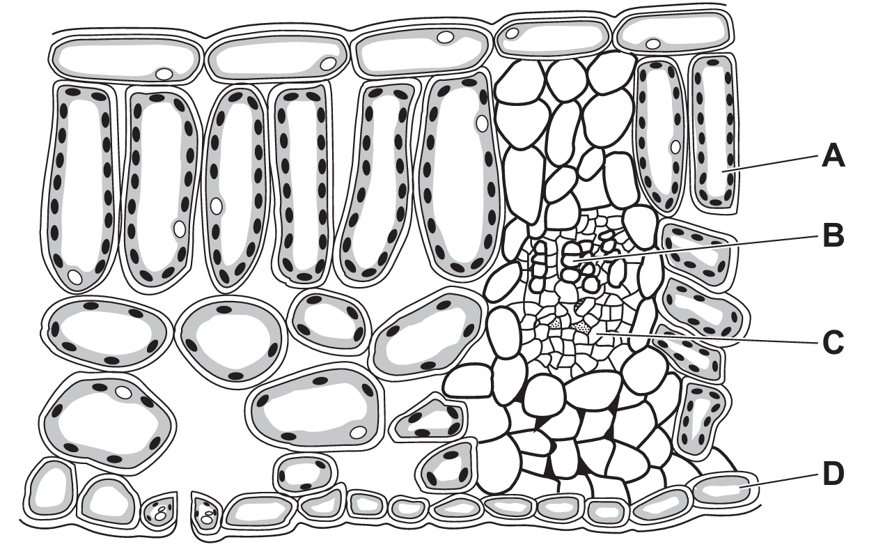 The diagram shows part of a cross-section of a leaf.