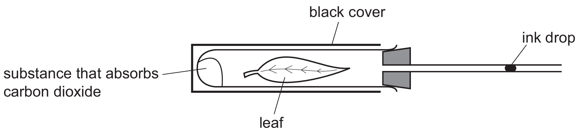The diagram shows an experiment to investigate gas exchange in a leaf.