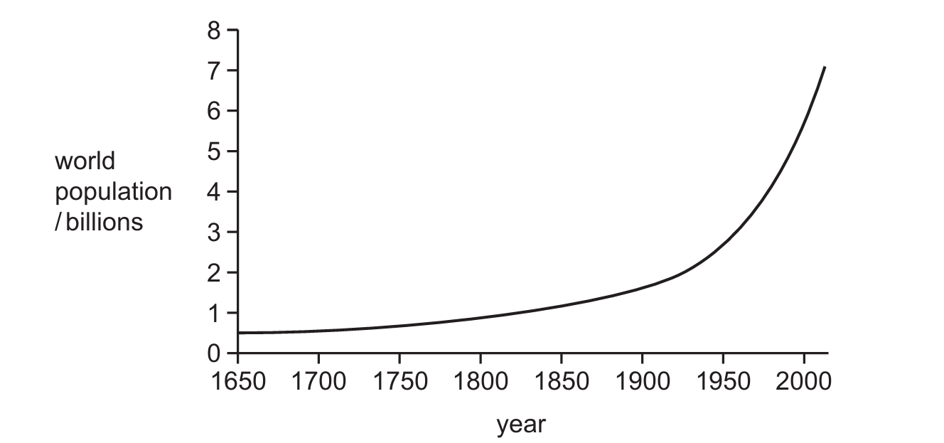 The graph shows how the population of the world increased from $1650$ until the present day.