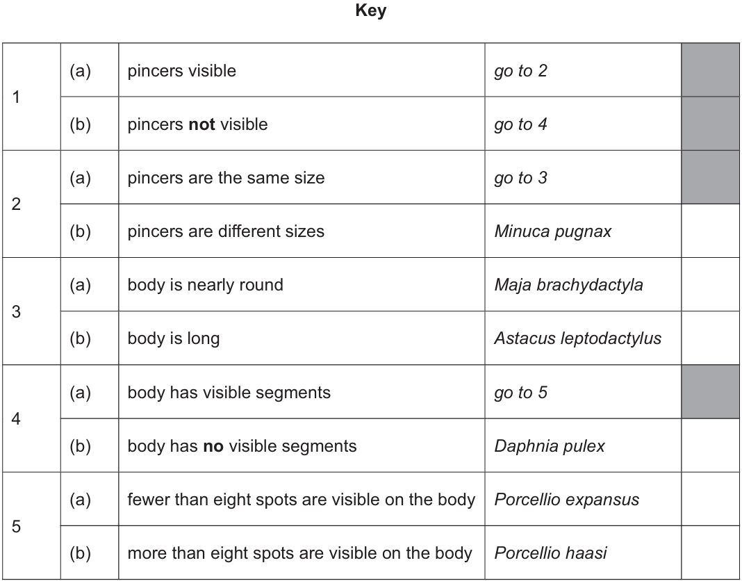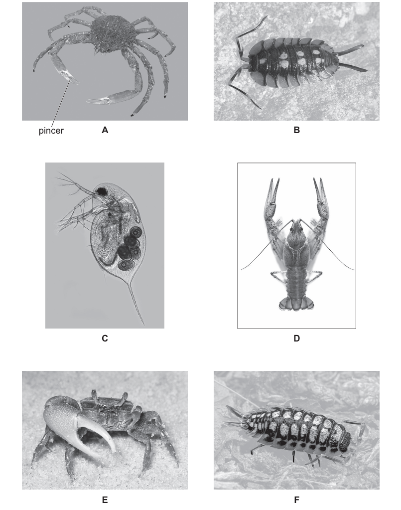 | 4(b) | No pincers + no visible segments | Daphnia pulex | C |