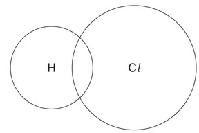 (c) Complete the electronic structure of a molecule of hydrogen chloride. Show only the outer shell electrons.