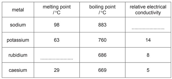 (a) melting point of Rb: any values between 31 °C and 61 °C (inclusive) (1)