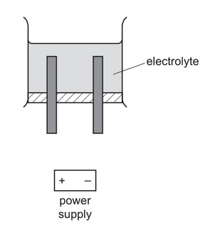 test-tubes over both electrodes and dipping into electrolyte (1)