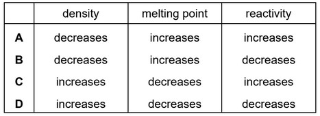 Which row shows how the properties of the Group I elements change on descending the group?
