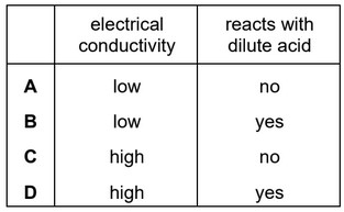 A Aluminium has a low density and is a good conductor of electricity.
