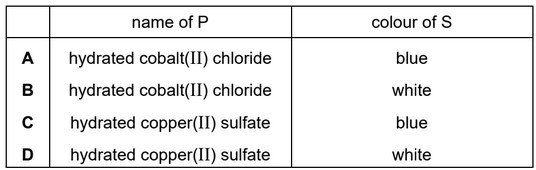 P is a hydrated metal salt with a blue colour. When P is heated, water is given off, leaving solid Q.