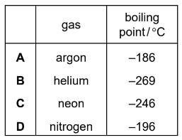 Which gas is both monoatomic and a liquid at \(–200^o\) C?
