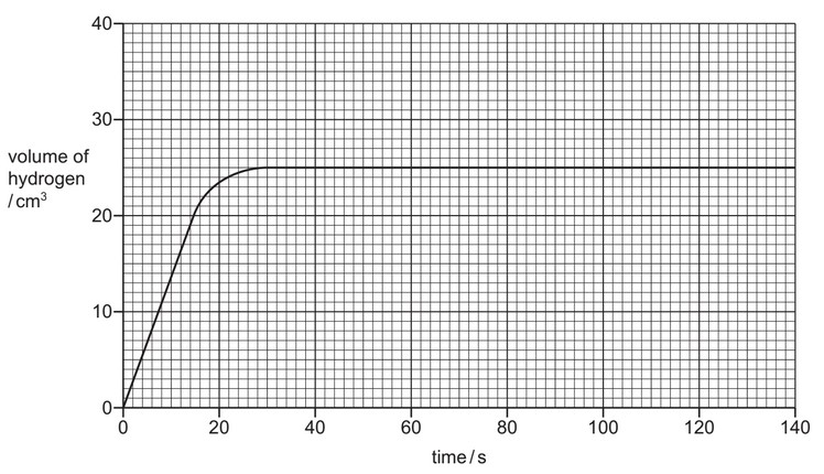 final volume below 25 cm3 hydrogen AND levelling off (1)