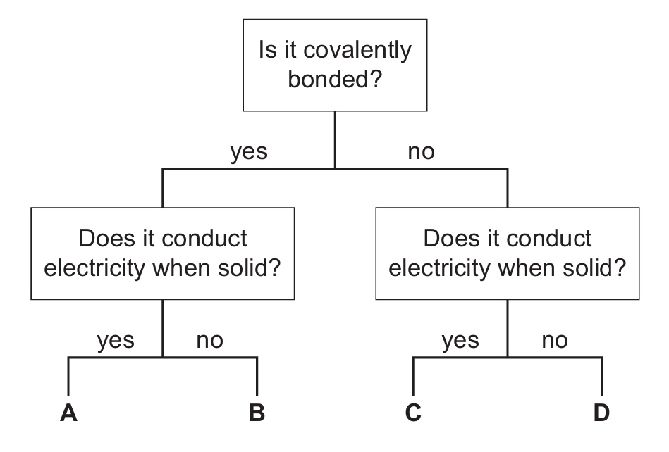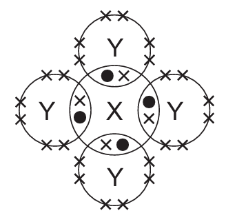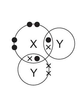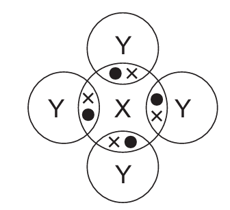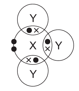 - One central atom (carbon) with four outer electrons (represented as dots or crosses)