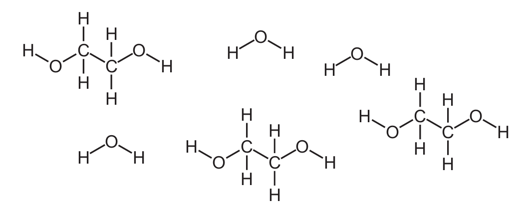 Ethylene glycol has the structural formula HO-CH₂-CH₂-OH, which means: