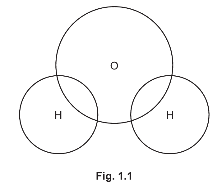 Complete Fig. 1.1 to show the dot-and-cross diagram for a molecule of water. Show outer shell electrons only.