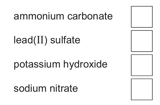 (d) Barium carbonate is insoluble in water. Choose from the list one other compound that is insoluble in water.