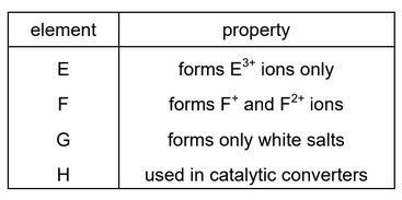 Some properties of metal J are listed.
