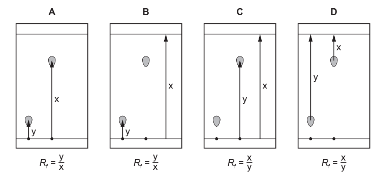 Which chromatogram shows how the \(R_{\mathrm{f}}\) value of a substance is calculated?