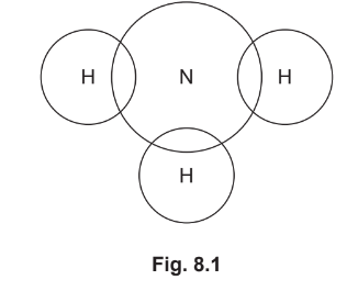 (ii) Complete Fig. 8.1 to show the dot-and-cross diagram for a molecule of ammonia.
