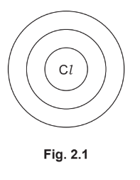 (c) Complete the diagram in Fig. 2.1 to show the electronic configuration of a chlorine atom.