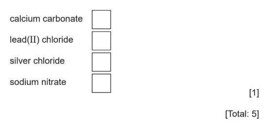 (e) forms an ion that gives a green precipitate on addition of aqueous sodium hydroxide……………………………………………………………………………………………………………………………. [1]