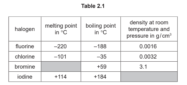 (ii) Explain why aqueous iodine does not react with aqueous potassium chloride.\([1]\)