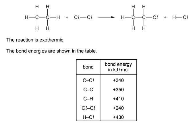 Chlorine reacts with ethane to produce chloroethane and hydrogen chloride.