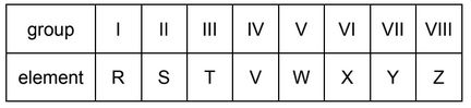 B Elements R and Y react together to form an ionic compound.