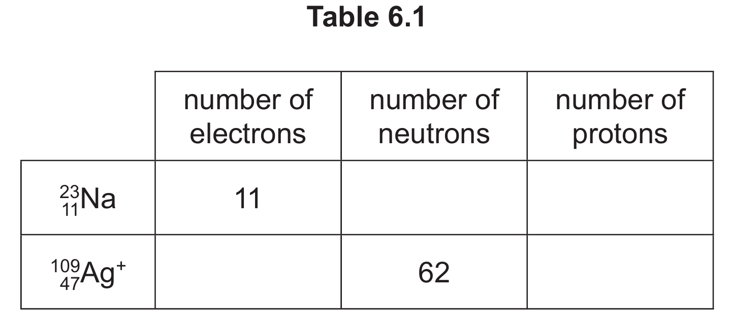 | \( \frac{109}{47}\text{Ag}^+ \) | 46 | 62 | 47 |